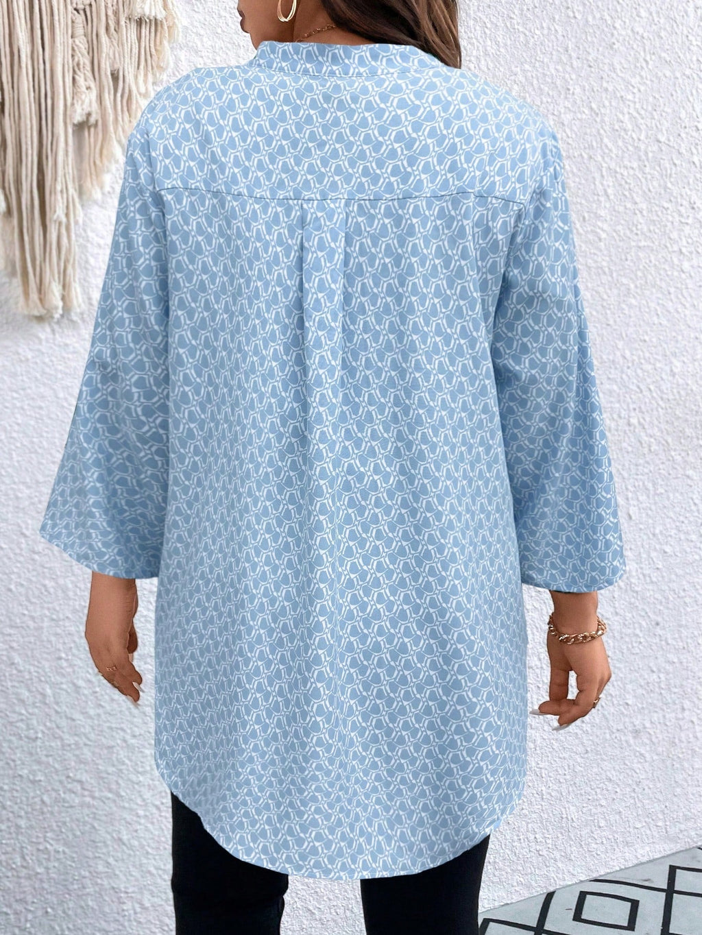 • Decote V entalhado que realça o colo com elegância • Mangas de enrolar que garantem versatilidade e conforto • Estampa total que traz personalidade ao visual • Modelagem de ajuste regular para um caimento perfeito