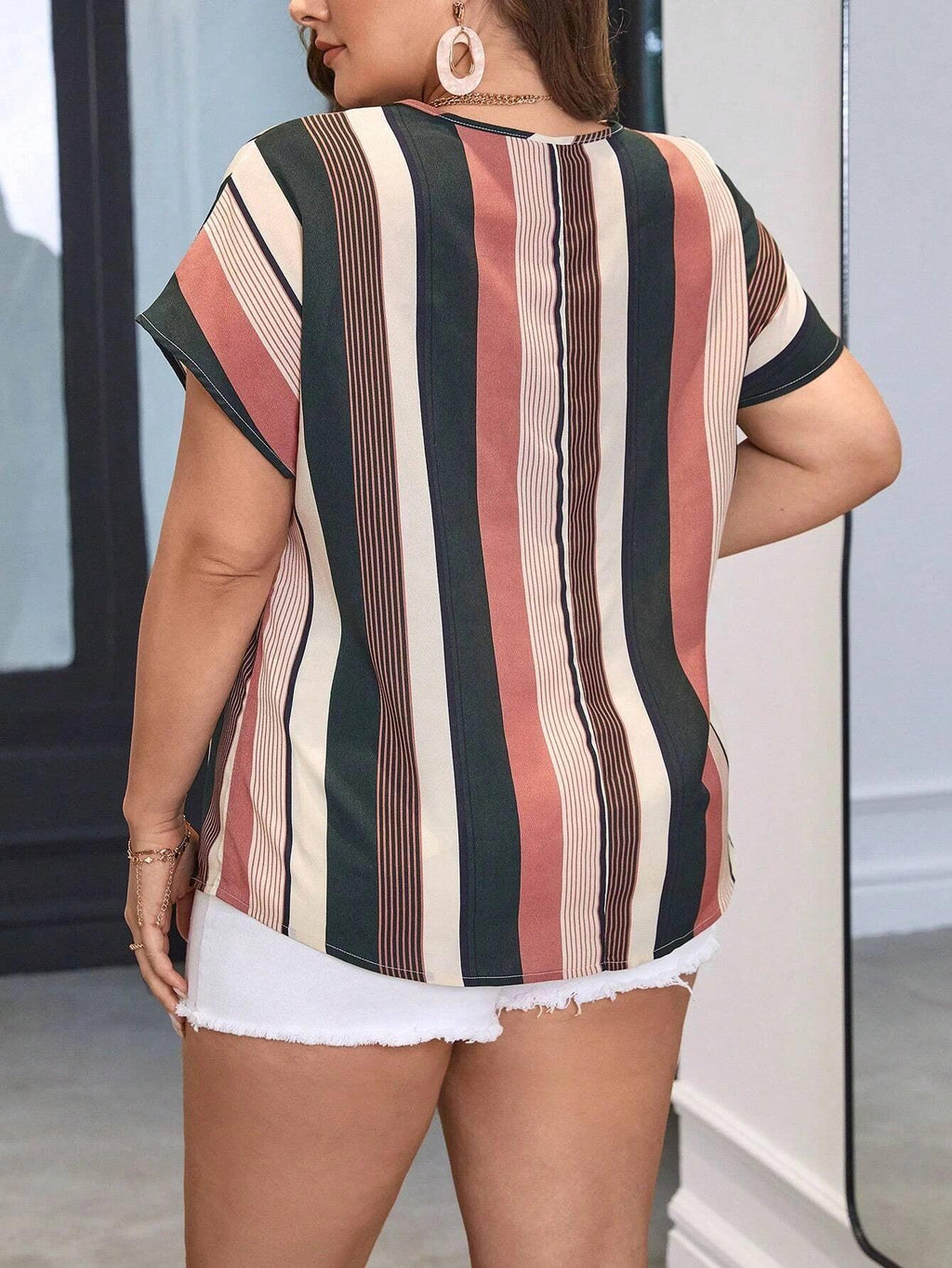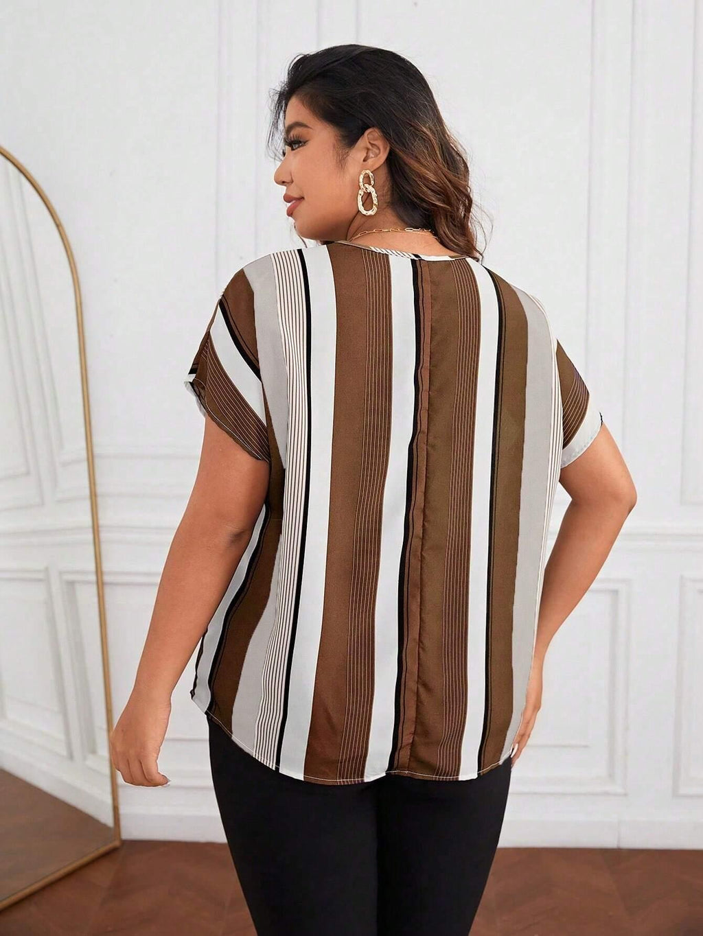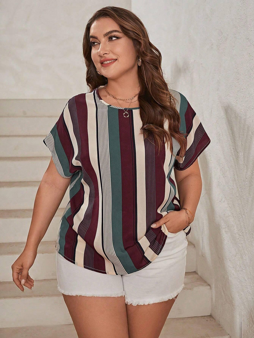 Transforme seu estilo com a Blusa Listrada Plus Size, elevando sua confiança e conforto.