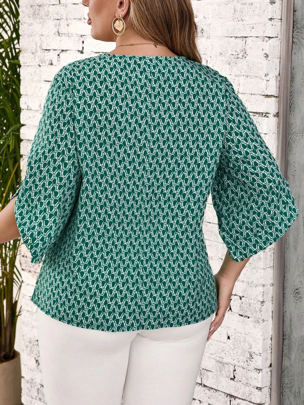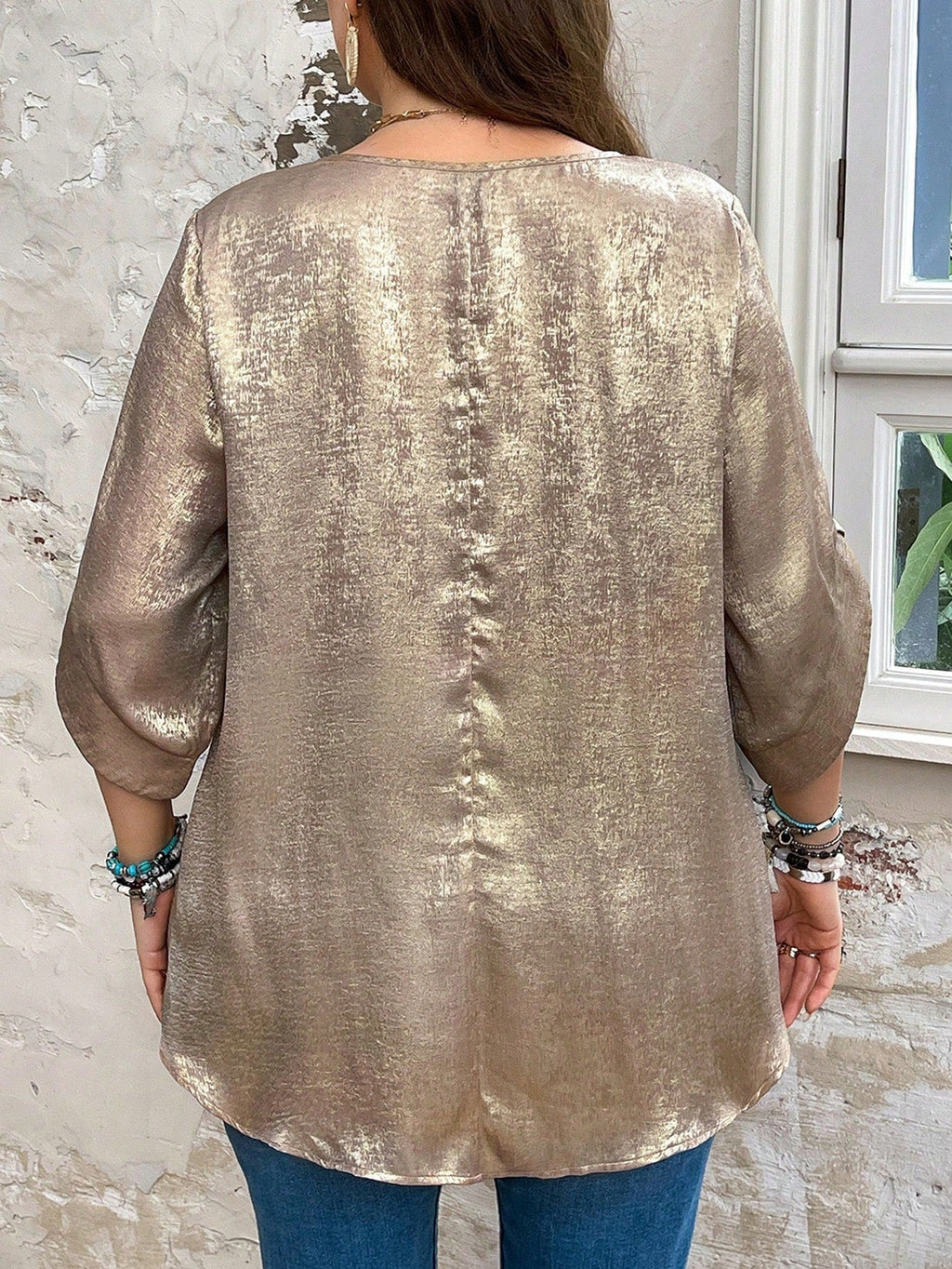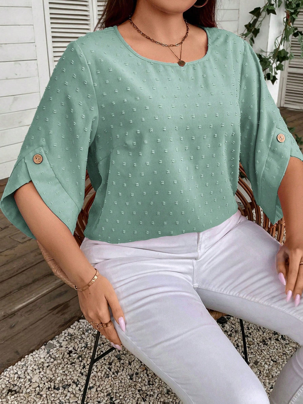 • Decote U que adiciona um toque de elegância ao visual • Mangas três quartos e mangas regulares para um caimento fluido e confortável • Detalhes de botão que oferecem um charme sutil e moderno • Confeccionada em tecido não elástico para um caimento impecável