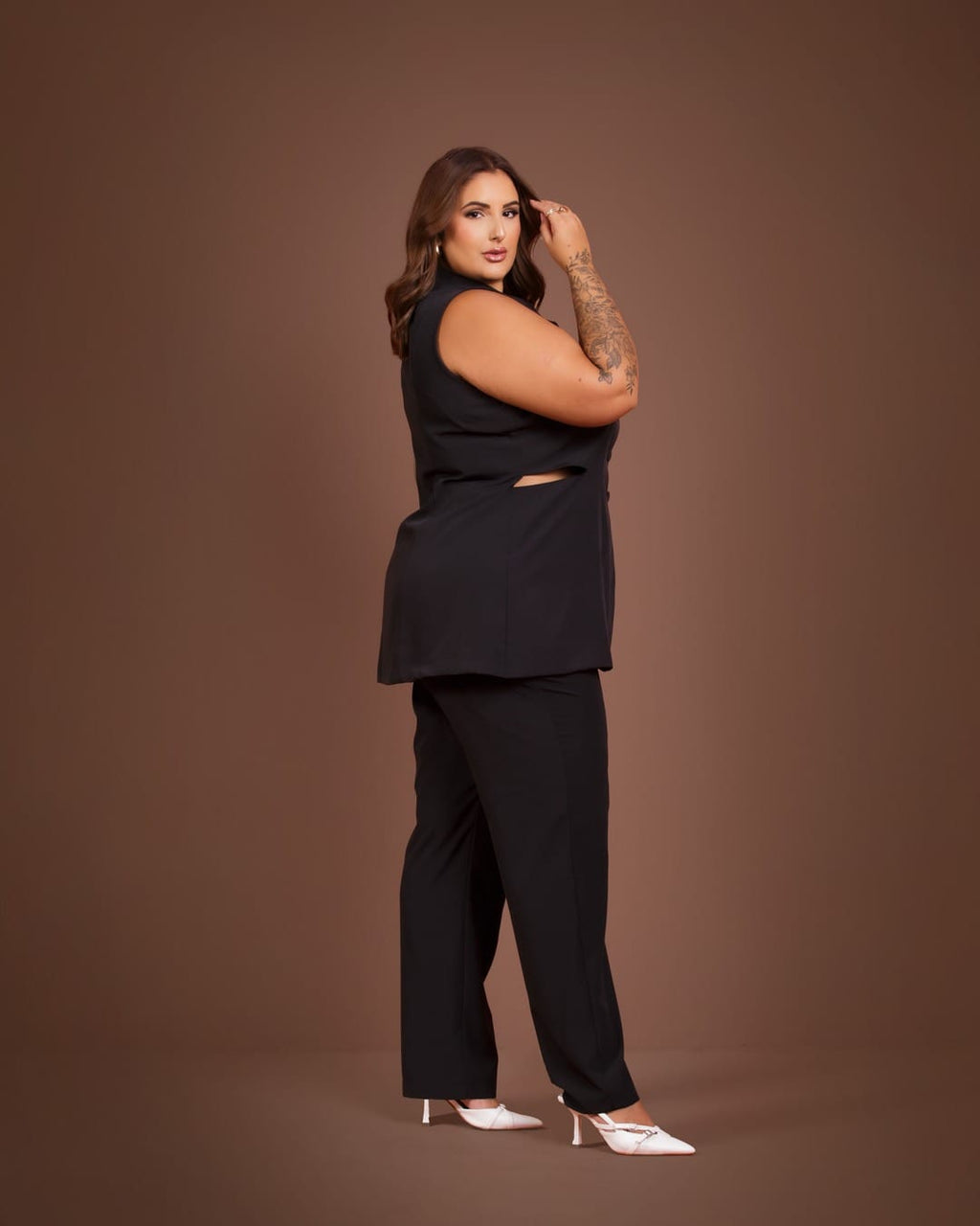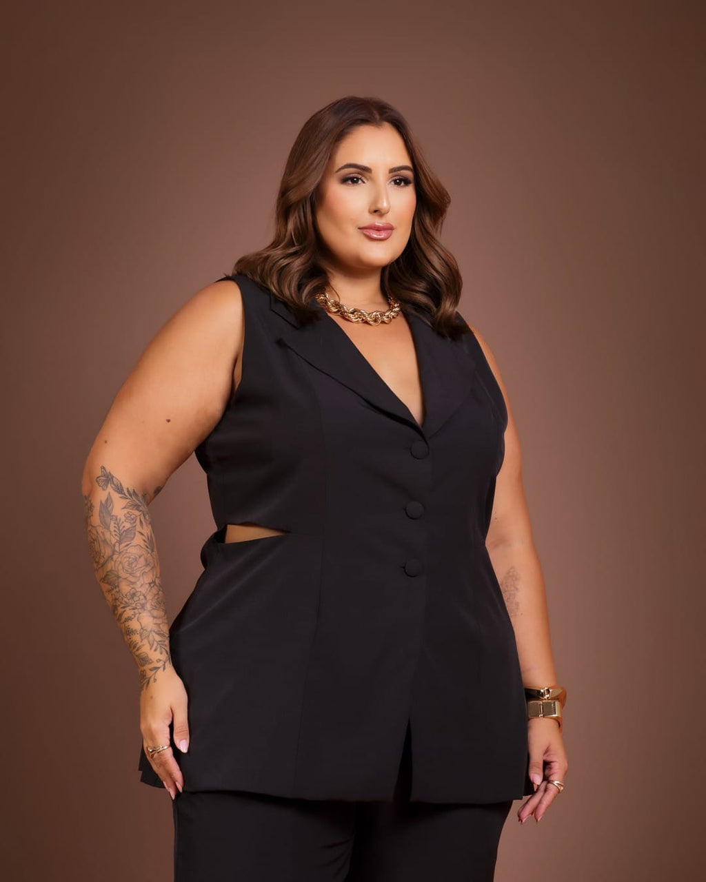 Conjunto elegante, composto por colete estruturado e calça de alfaiataria. O colete traz um design sofisticado com três botões frontais e uma sutil abertura na cintura, valorizando a silhueta com modernidade. A calça apresenta cós reto na frente, elástico na parte de trás para melhor ajuste e fechamento por zíper, garantindo conforto e praticidade. Confeccionado em tecido Espandix com elastano e forro interno, este conjunto une sofisticação e versatilidade, ideal para composições formais e casuais com um toque de moda.