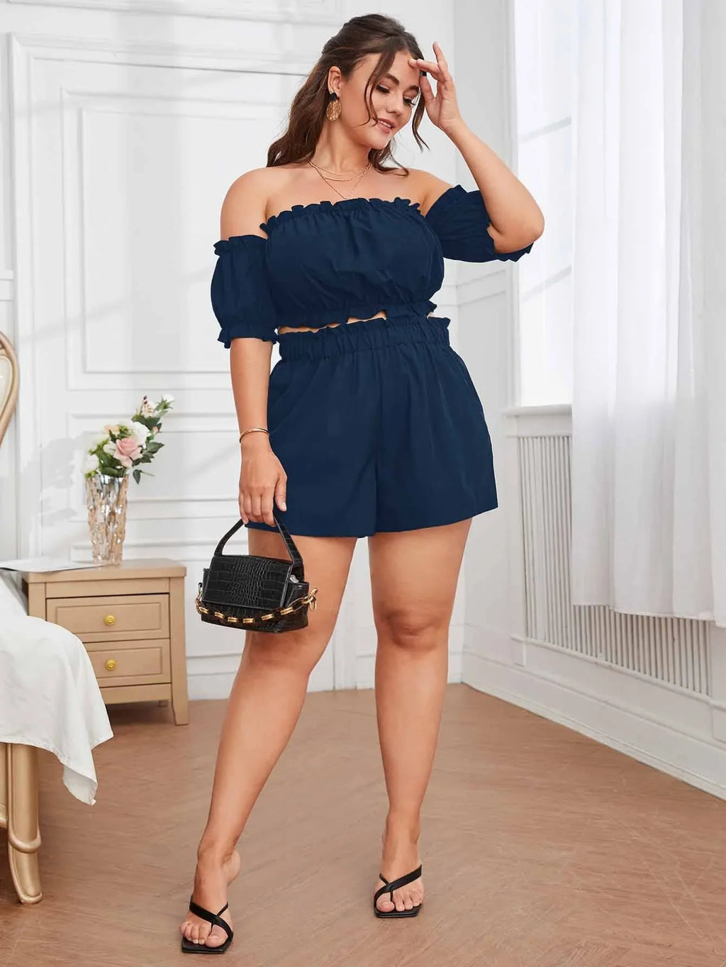 Conjunto Plus Size Casual com Babados e Cintura Franzida Renata