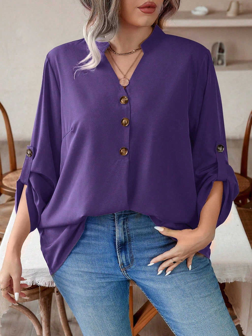 Blusa Manga Arregaçada com Detalhe na Gola Maria Laura