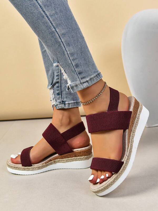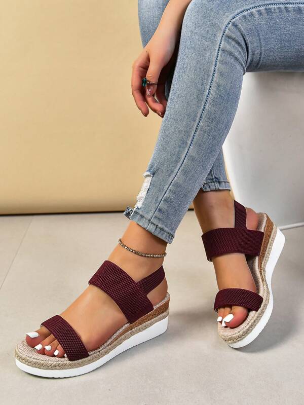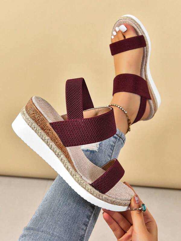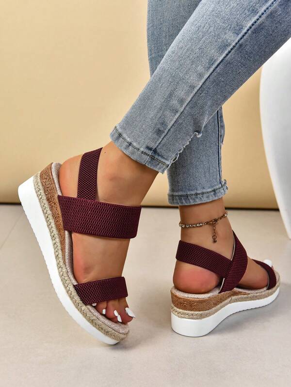 Cor: Vinho Estilo: Férias Dedo do Pé: Dedos à mostra Estampa: Simples Tipo das alças: Slingback (tira atrás) Salto: Plataforma Altura do salto: Calcanhar médio Material da parte superior do calçado: Tecido Material de revestimento: Tecido Material da palmilha: Poliéster Material da Sola: PUR