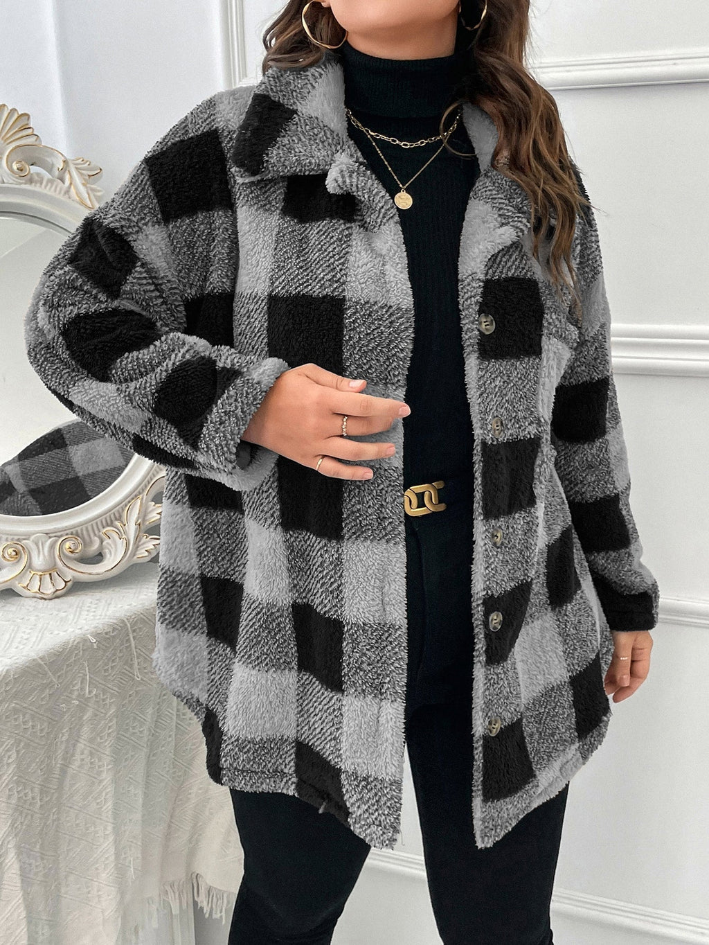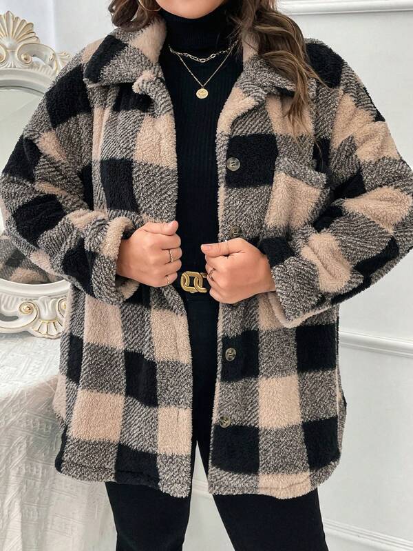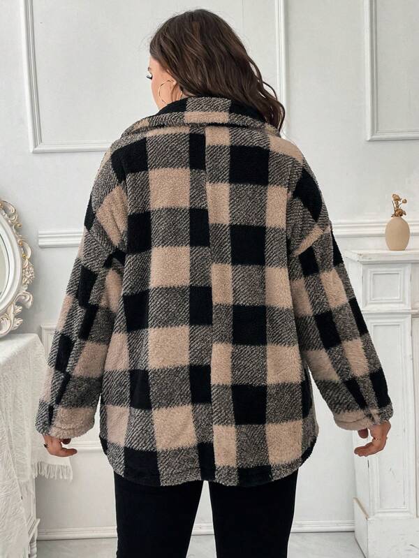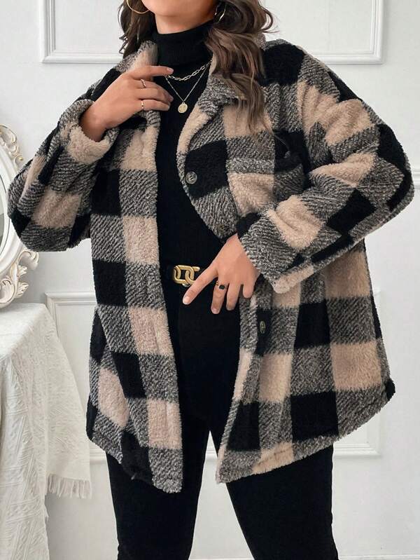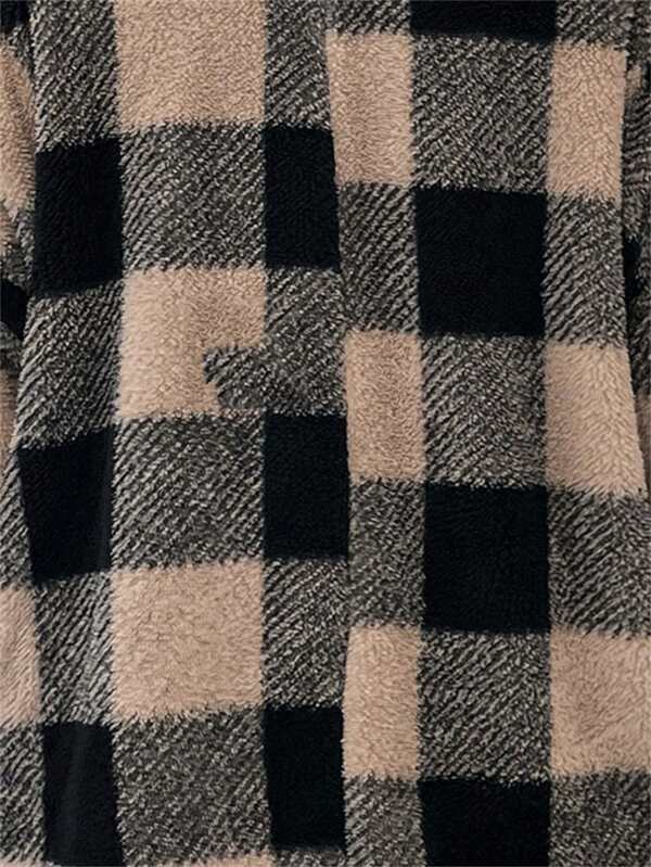 Cor: Damasco Estilo: Casual Estampa: Xadrez Tipo: Pelúcia Gola: Variação da lapela Comprimento da Manga: Manga Comprida Tipo de manga: Ombro caído Comprimento: Curto Caimento da peça: Ajuste Regular Tecido: Não elástico Material: Flanela Composição: 100% Poliéster Instruções de manutenção: Lavar à mão, não lavar a seco Temperatura: Inverno (<10 ℃/50 ℉) Possui bolso: Não Translúcido: Não Possui forro: Sem forro